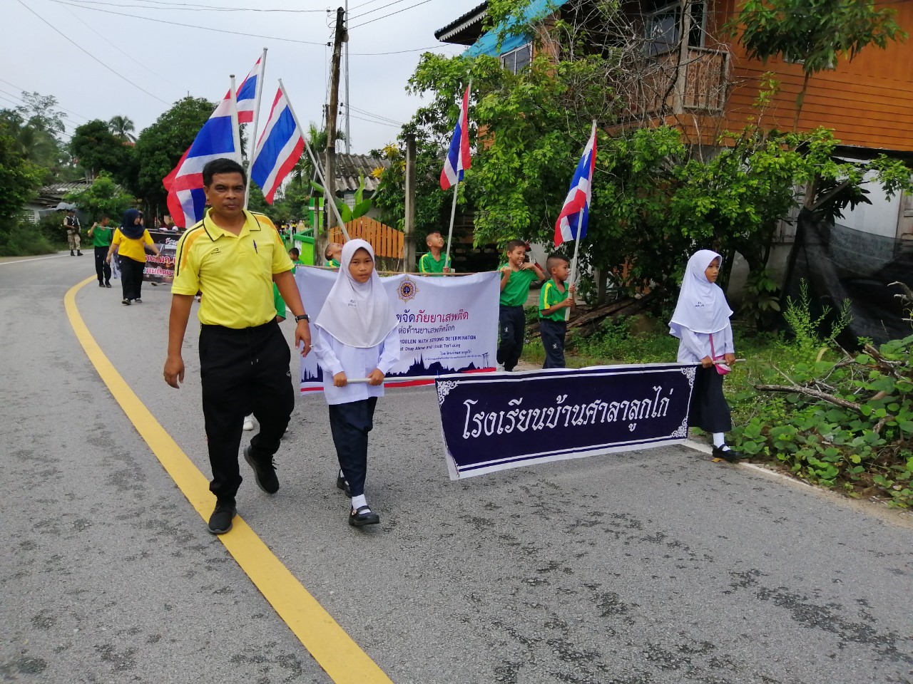 วันที่ ๒๖ มิถุนายน ๒๕๖๒ โรงเรียนบ้านศาลาลูกไก่ พร้อมใจกันเดินรณรงค์ต่่อต้านยาสเพติด โดยมีผู้อำนวยการโรงเรียน ได้อ่าน สาร หน้าเสาธง คณะครูนักเรียนร่วมเดินรณรงค์ภายในชุมชน