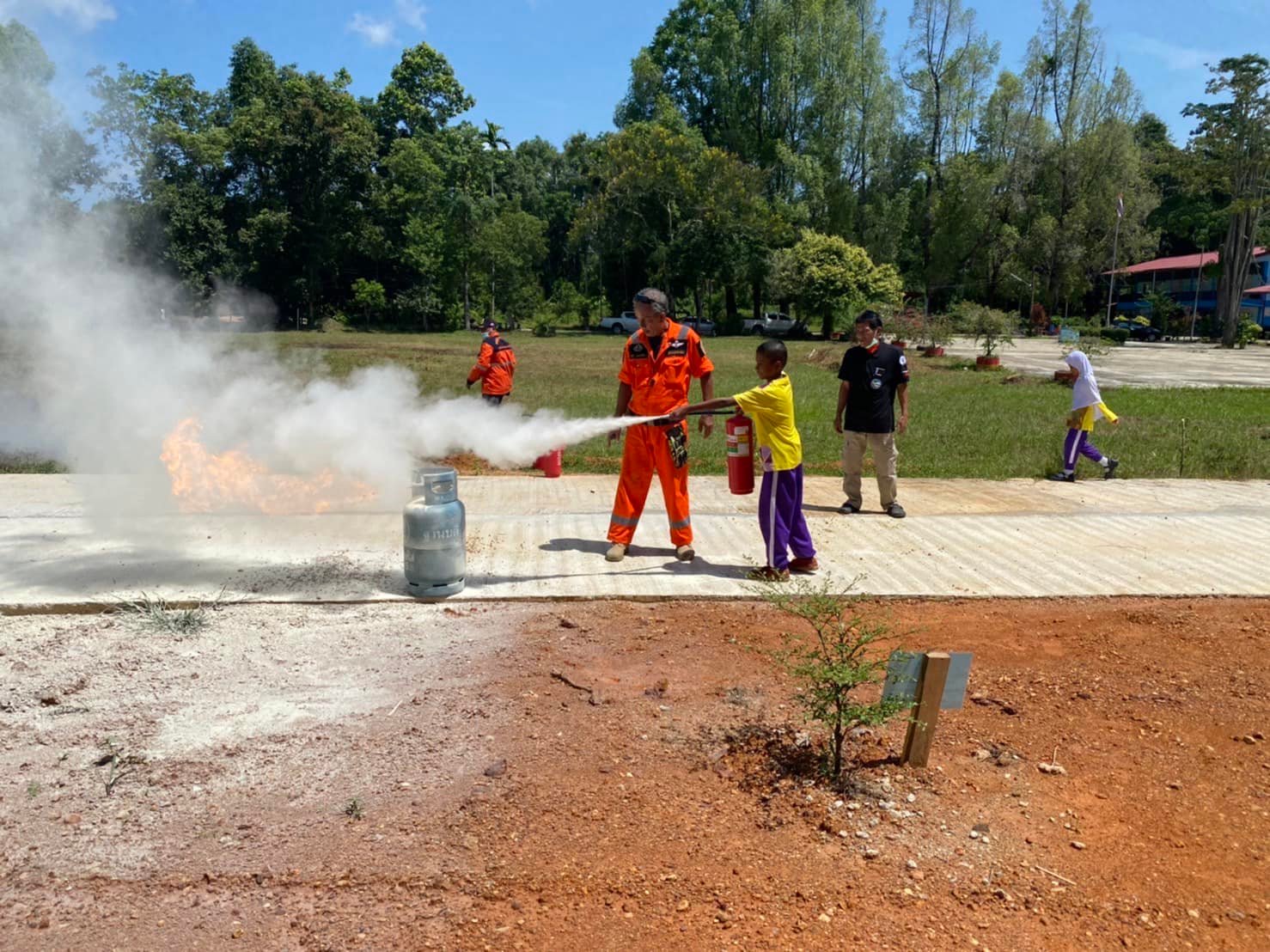 ในภาคเช้า เป็นภาคทฤษฎี ให้ความรู้ เรื่องอัคคีภัย รู้จักอุปกรณ์ดับเพลิง และเรียนรู้วิธีเปิด-ปิด เครื่องมือต่างๆ